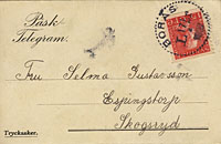 Föll på sin postÅr 1947 köpte Rickard Hallin fastigheten Villa Rutan (Ankarvägen 5). Där bodde sedan han och hustrun samt sonen Arne med familj. Rickard var också brevbärare — även på söndagar på den tiden (fram till 1951). Dessvärre föll han på (och med) sin post — i ordens rätta bemärkelse: en vinterdag, den 27 februari 1952, slirade han omkull på landsvägen strax norr om järnvägskorsningen och föll så illa att han avled av skadorna. Villa Rutan försågs strax efteråt med en utbyggnad, som kunde inrymma postexpeditionen för den nya personalen (som inte längre hörde till familjen). Hedvig Karlsson g. Olsson (Solsäter) var den första föreståndaren där. Inger Marie Wallenius var också anställd där omkring 1954. |