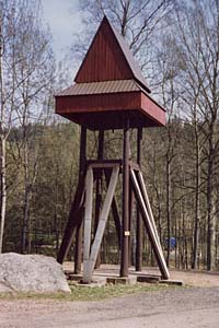 KlockstapelEftersom församlingshemmet i huvudsak användes för gudstjänster växte efterhand en önskan om en klockstapel fram. Syföreningen tog på sitt ansvar att försöka ordna detta och det är huvudsakligen deras förtjänst att den kom till stånd och kunde invigas den 4 oktober 1958. Genom sina försäljningar och lotterier lyckades man samla ihop erforderligt kapital. Klockstapeln ritades av stadsarkitekten Harald Ericson och fick samma utseende som den vid Sjöbo kyrka. Firma Byggnadsarbete [Helge Hermansson & C:o] från Fristad åtog sig arbetet för 5 000 kronor. Klockan göts av Bergholts Klockgjuteri i Sigtuna enligt den »holländska modellen» med ytterdiametern 87 cm och vikten 330 kg. »Jag ringer till vila, till andakt, till id se stunderna ila, jag lyser Guds frid.» Klockstapeln monterades ned 2008 i samband med Församlingshemmets överlåtelse till Frufällans Fastighetsägareförening. Den kommer att sättas upp på annat ställe i pastoratet.