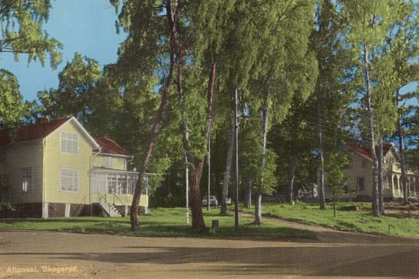 På planen hitom det vänstra huset låg ändhållplatsen Skogsryd; där vände förr