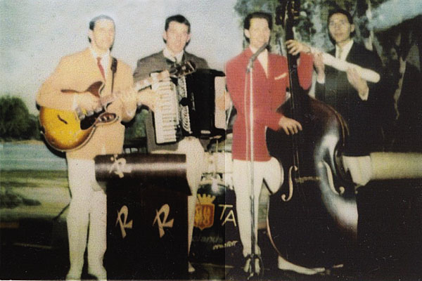 Rolands kvartett från premiären 1959. Inge Gustavsson (g), Stig Ryhd (drspl), Roland Persgården